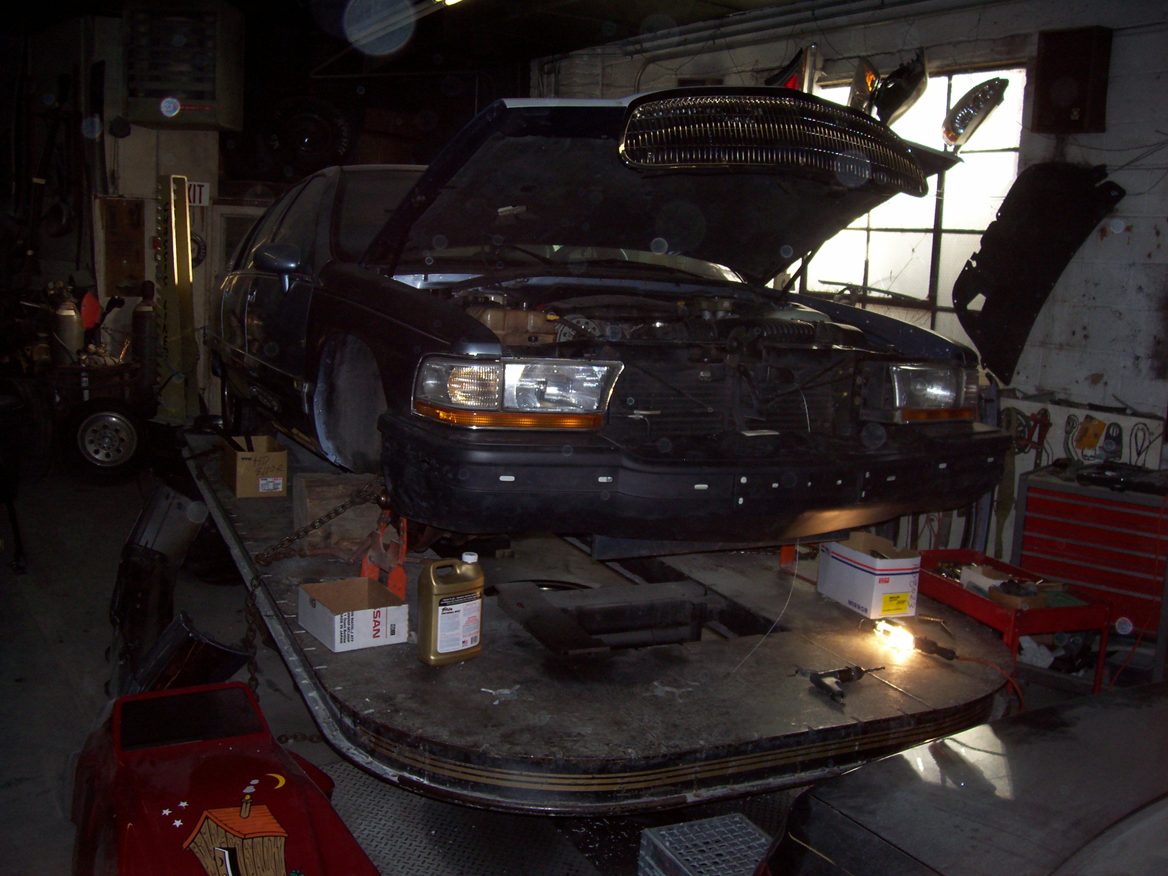 Here is our Accudraft heated spray booth. All paintwork is done in here, and everything is baked for one hour at 130*.